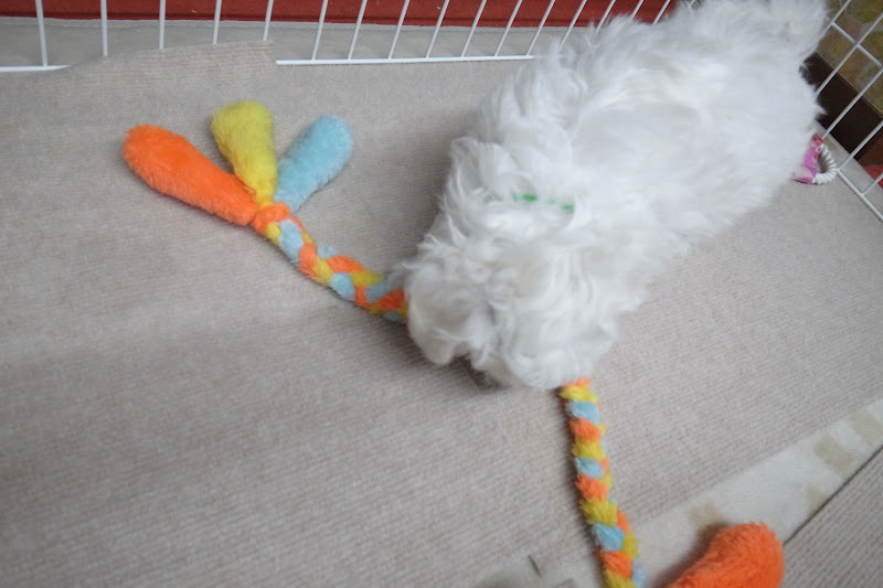 寝起きは1〜2ワンずつ、トイレ用の小さなサークルに放り込まれる。