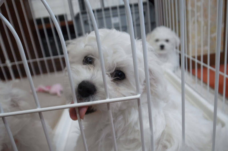 10時過ぎに起きだしたベイビーズ、クレートから一匹ずつ取り出され、まずはトイレエリアでオシッコをすます。