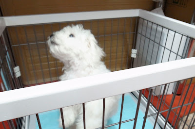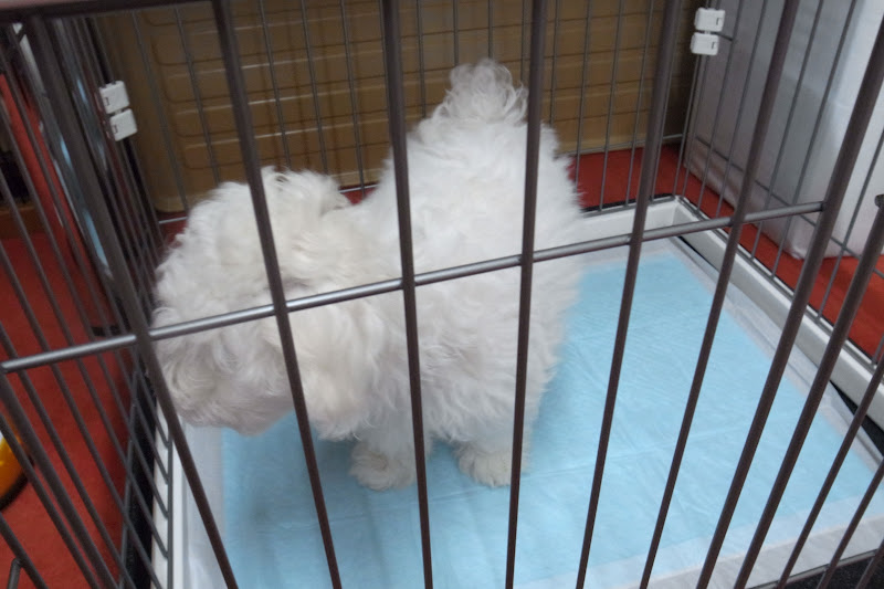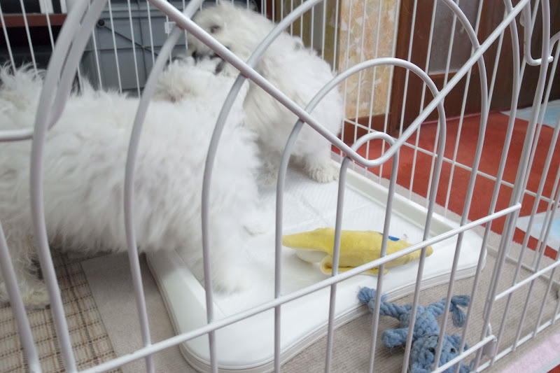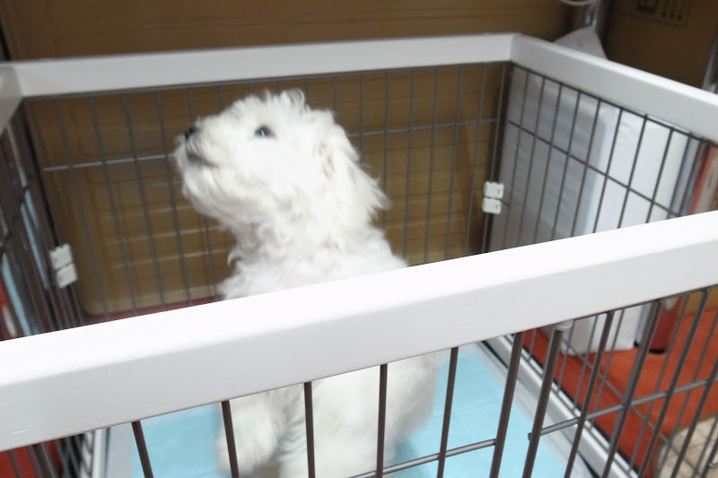 こちらはお庭に遊びに出るところまで新しいお家に慣れ親しんでるようだ。もうすぐリードをつけてお散歩デビューかな。