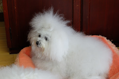 ホワイトボロズ 週明け月曜日は、本日快晴の金沢方面、午後から西陽が射し込んでくるマイオフィスは暑いくらいだ。 週末土曜日は珍しく、東京からの来客を迎えて「飲んで」た飼主、明けて日曜日はその客人とオシゴトだったのだが、だる〜ぅい一日となった。 と云うことで、今日は待ちに待ったお風呂屋さんのピナ姫。 こざっぱり!! 我家のスリーボロズ、只今、辛うじて「しろ」 あと3日もつかな・・・?
