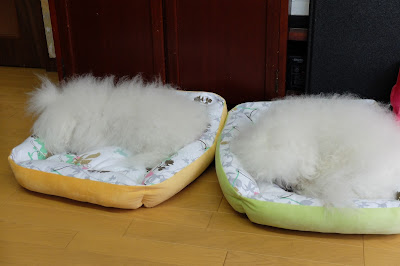 スリーボロズそろってインドア・トイレですますことができれば飼主も気分的に楽になるんだけどな・・・。