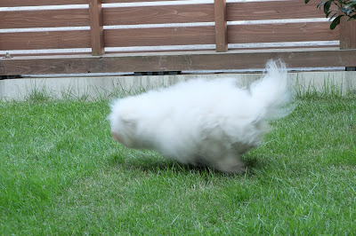 本日日曜日 本日日曜日、午前中はいっときパラパラときたものの、その後、お日さま絶好調の一日。 相変わらず「あつい」 と云うことで、なんの脈絡もなく、一気にボロズのオンパレード。 (そういや本日プリ嬢、庭で遊んでたのはいいのだが、部屋に勢いよく飛び込もうとして2度も網戸に激突、ボヨヨ〜ンとはじき返される、そのあと、しばらく部屋に入るのびびっとったな・・・。)