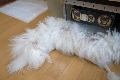ほぼ完全復活のプリ嬢、朝のお散歩もフルコースOK、それに引き換え、玄関先から全く歩こうとしないピナ姫。