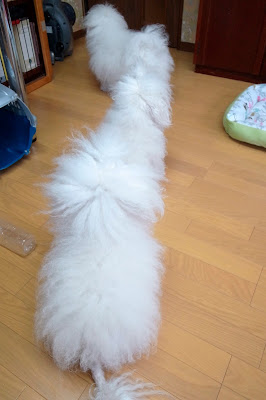 ドアの向こうに誰か来ると、いつの間にか縦列状態のスリーボロズ