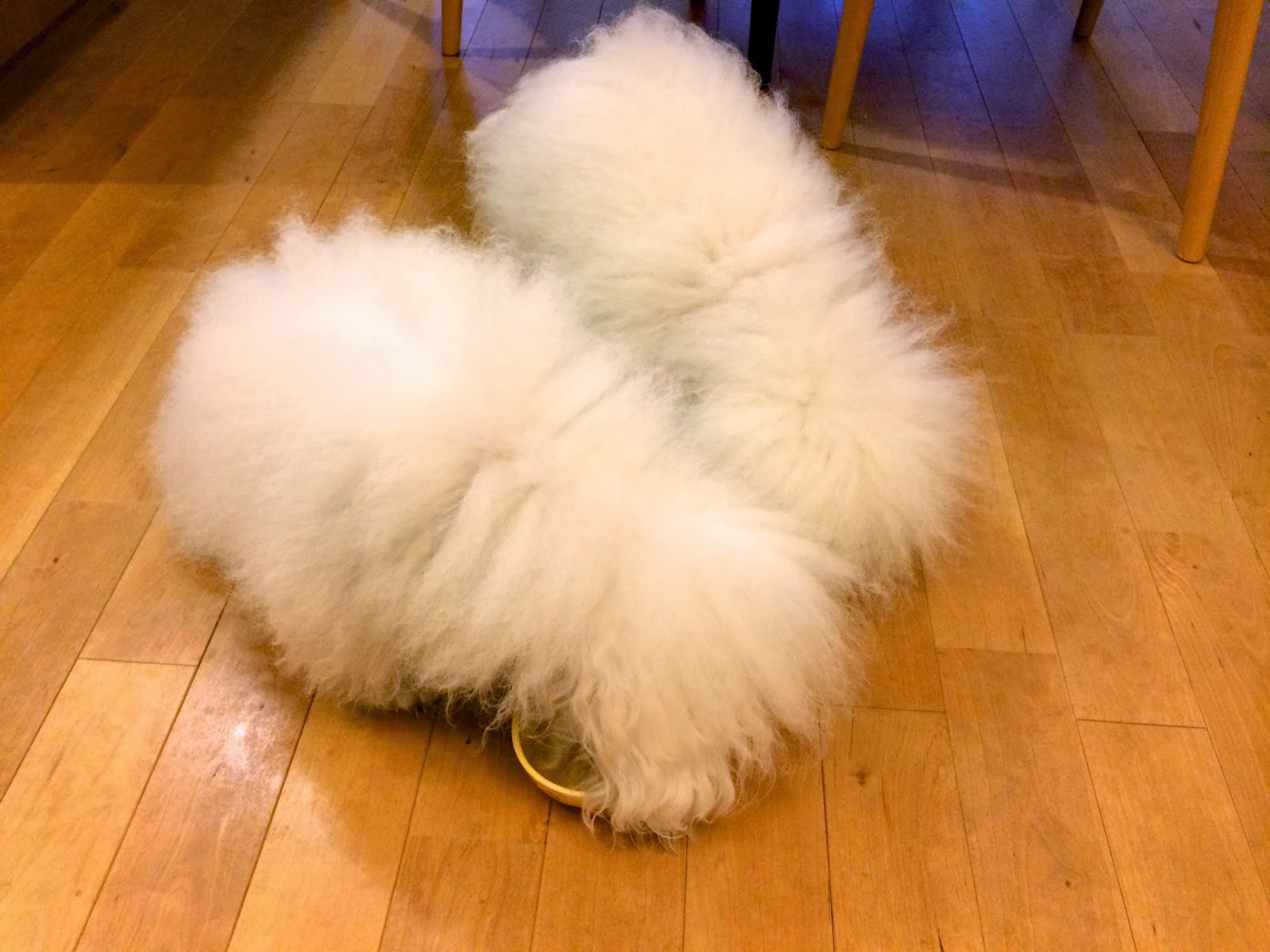 出勤時、ボス殿は普段通り、ピナ姫はバッグイン、プリ嬢はボス殿のレインコートを着用、どうやらこのレインコート姿が新鮮だったらしく、職場に着くなり、みんなに「カワイイ」の声をかけられ、満足そうなプリ嬢。