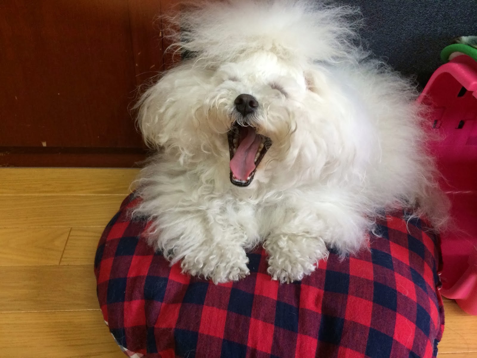 大欠伸 少しずつ、秋も深まっている、そんな実感の昨日今日、とにかく朝の散歩が「さむい」飼主、布団から抜け出すのがおっくうな季節になってきた。 で、そのお散歩なのだが、またまたボス殿お腹を壊したようで、少し出血の運Chi。 と云うことで、午前中は病院へGo。 これと云って何が悪いわけでもなさそうなのだが、今年はボス殿に限らず病院にかかる回数か多いような気のする我家のスリーボロズ。 唐突ですが、いよいよボス殿も来週去勢の予定です。 おとなしくお休みのボス殿の横で、大欠伸のピナ姫、我家の構図・・・。