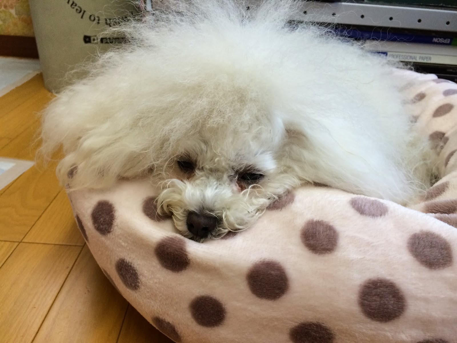 惰眠・・・ 夜明けの時刻に連動して目覚める我家のスリーボロズ、それでも、6時過ぎにはどうやらゴソゴソしているようだ。 と云うことで、今朝は昨日より少し早めにお散歩に出かける。 一通りフルコースをこなして、今日は出勤も徒歩。 で、夕刻からは雨の予報なのだが、たまに、パラパラとくるものの、いまのところ路面は乾燥状態、今なら徒歩帰宅できないわけでもないのだが・・・ そんなこんなで、ここまでは通常の運動量のスリーボロズ、その運動量が適度に作用しているのか、お昼間はボロズそろってよく寝ていたぞ・・・(飼主似!?)。