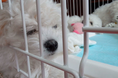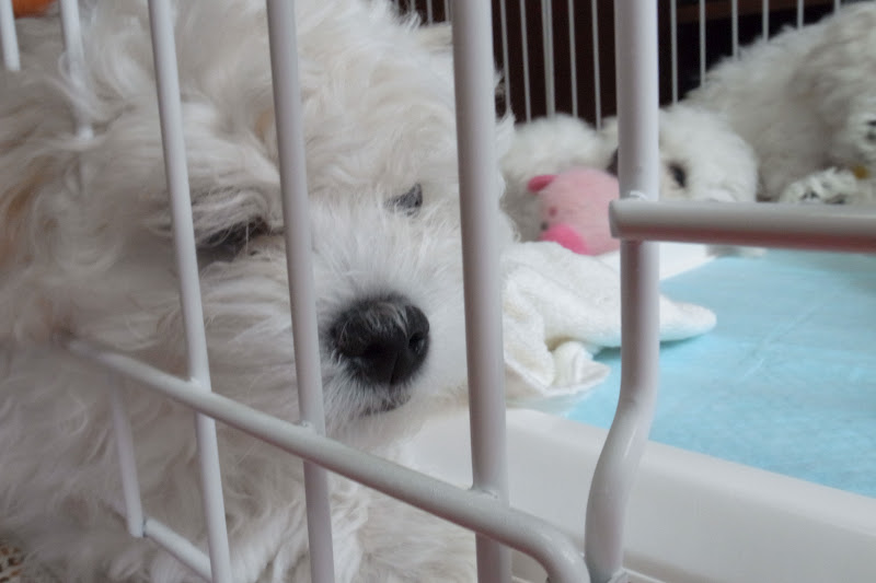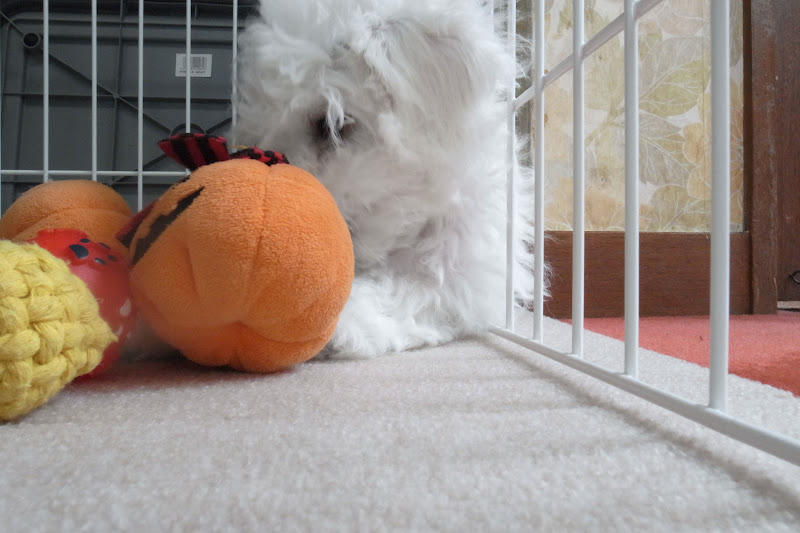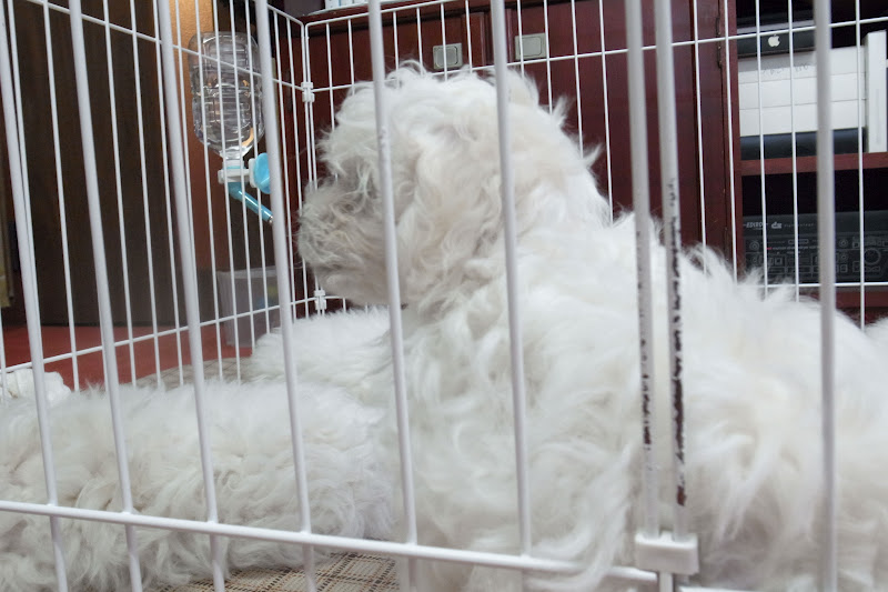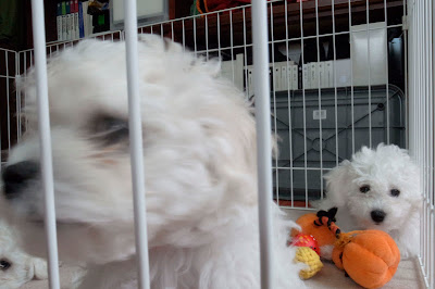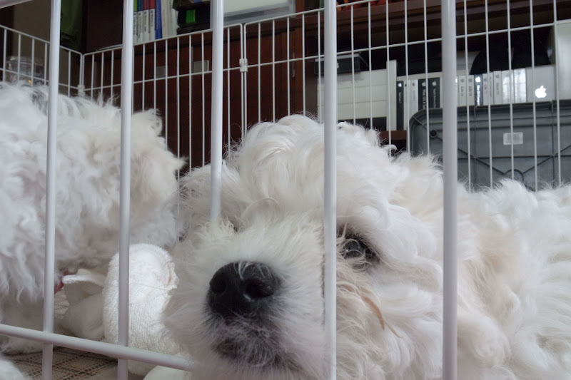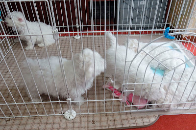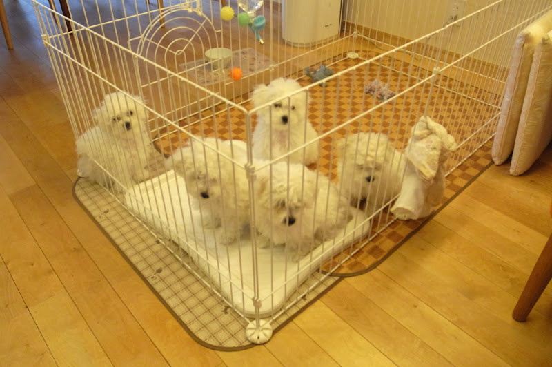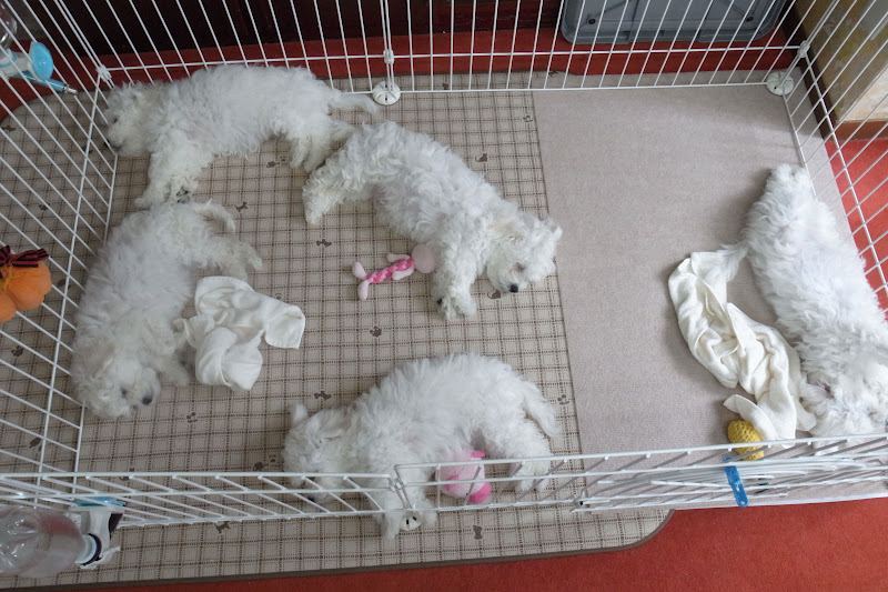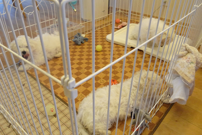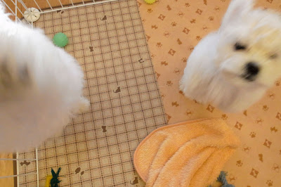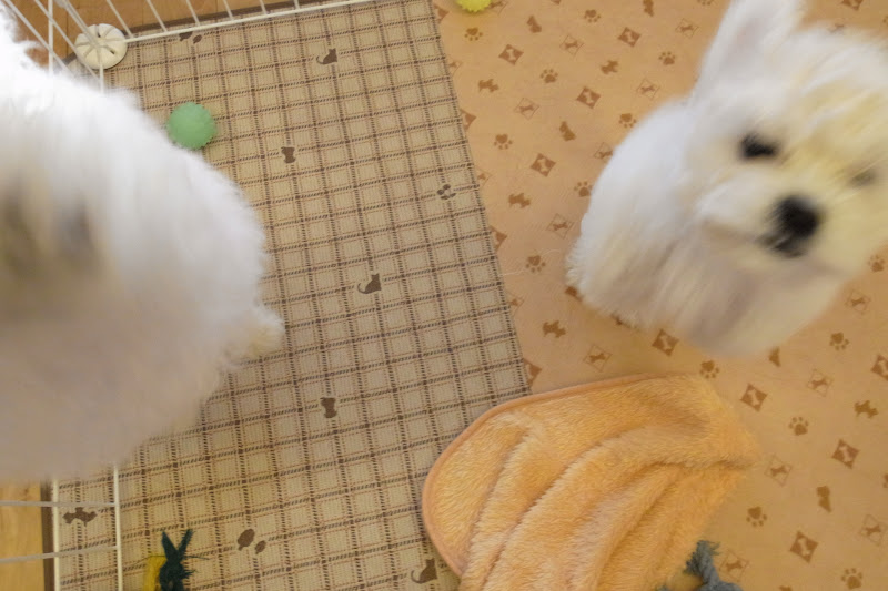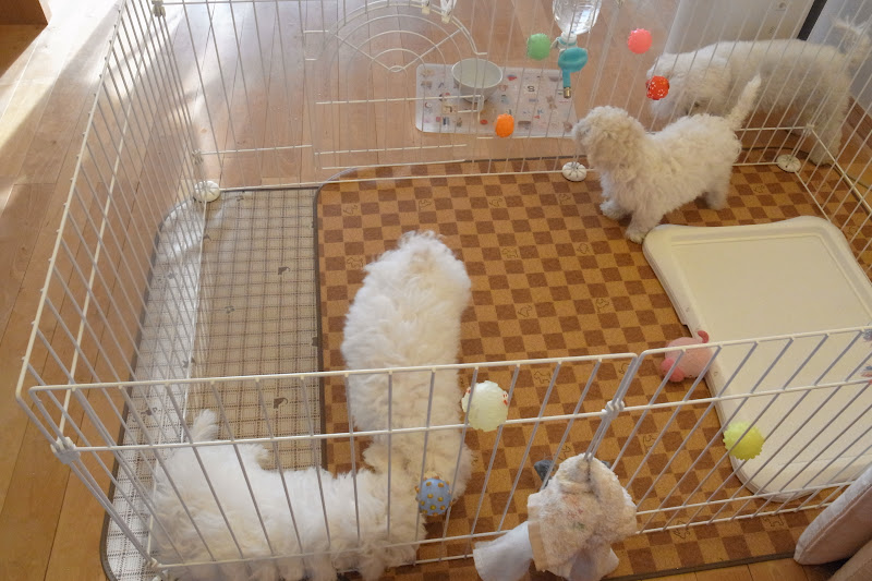 やはり、昨日にも増して一匹あたりの占有面積が増えたもんじろうとプリ、サークルの中を好き放題に走り回ってジャンプして取っ組み合ってる。