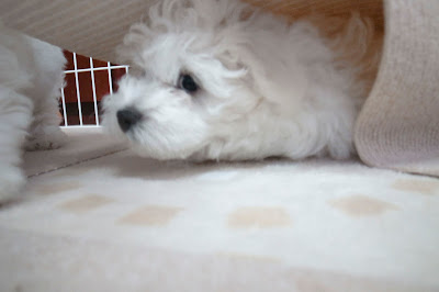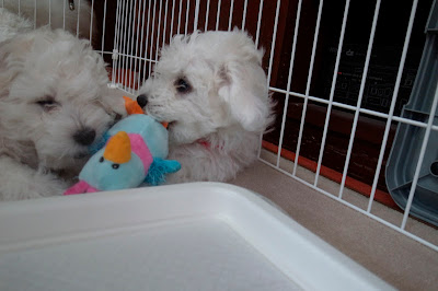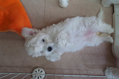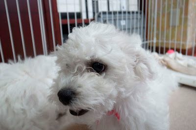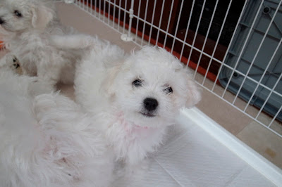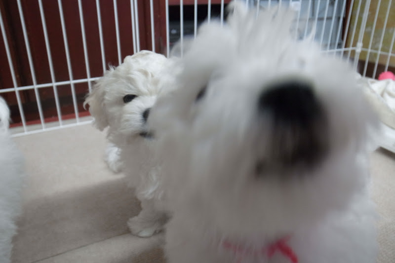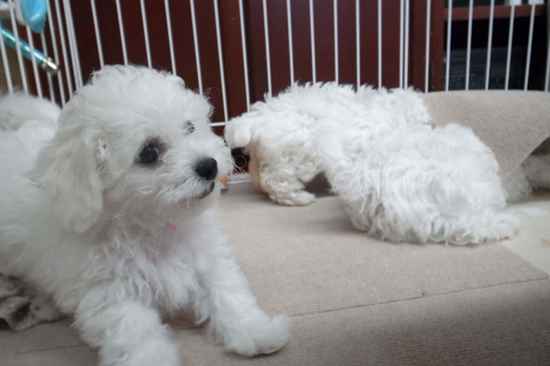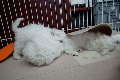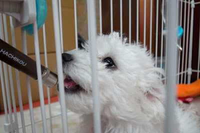 10時過ぎに起きだしたベイビーズ、クレートから一匹ずつ取り出され、まずはトイレエリアでオシッコをすます。