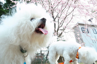 さて、玄関先に乗りつけられた車から降ろされる7つのクレート。玄関に運び込まれるとすぐにPina & Bossは連れ立って夕刻のお散歩にGo。