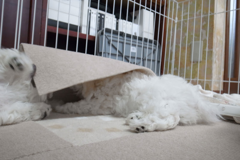 それでも1時間あまりで体力消耗なのか11時過ぎには再びウトウトとはじめる。で、このタイミングで飼主、気が向けばもう一度それぞれのクレートにin。