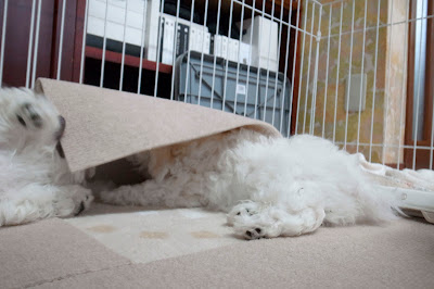 さて、昼食後はそれぞれにひと暴れしながら、それぞれに大抵UNCHIをするようである。そして14時前にまたまたウトウトとしながらクレートin。