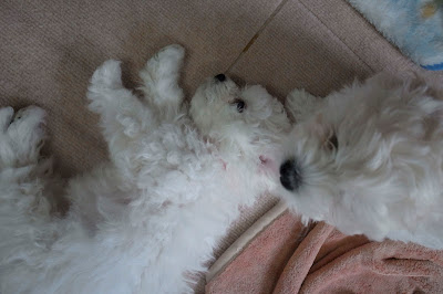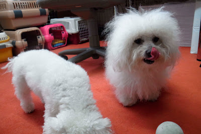 おそらくPina & Bossが散歩に出かけている間のベイビーズの騒がしさに家人は耐えきれなくなるのだろう、40〜50分ほどの散歩を終え帰宅した頃にはベイビーズは既に寝床を後にして階下に下りてきている。
