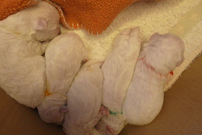 ほぼ半日、ピナさんは戒厳令を発令。ボス殿を仔犬たちに近づけませんでしたが、就寝時間には、自分がクレートの中に移動するまでにはボス殿を許容。
