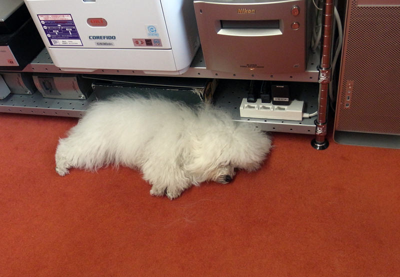 ほぼ3時間後、ヌボーッと起き出した飼主とPina & Boss。とりあえず、明日からのお仕事に備えてお仕事場の風通しに来ています。