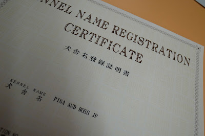 犬舎名は「PINA AND BOSS」と、まぁ、ベタではあるが、それなりにカッコいいと満足している飼主。