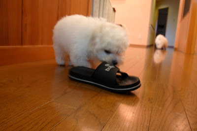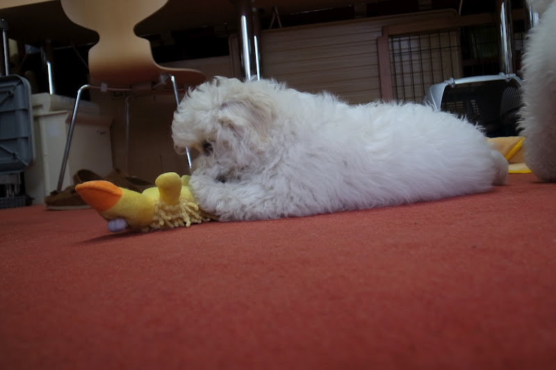 このキャンプインに先だって、ボンちゃん飼主の職場に短期里帰り。Pina & Boss & Priに取り囲まれながらも、勝手知ったる我家、先頭に立って走り回っていた。