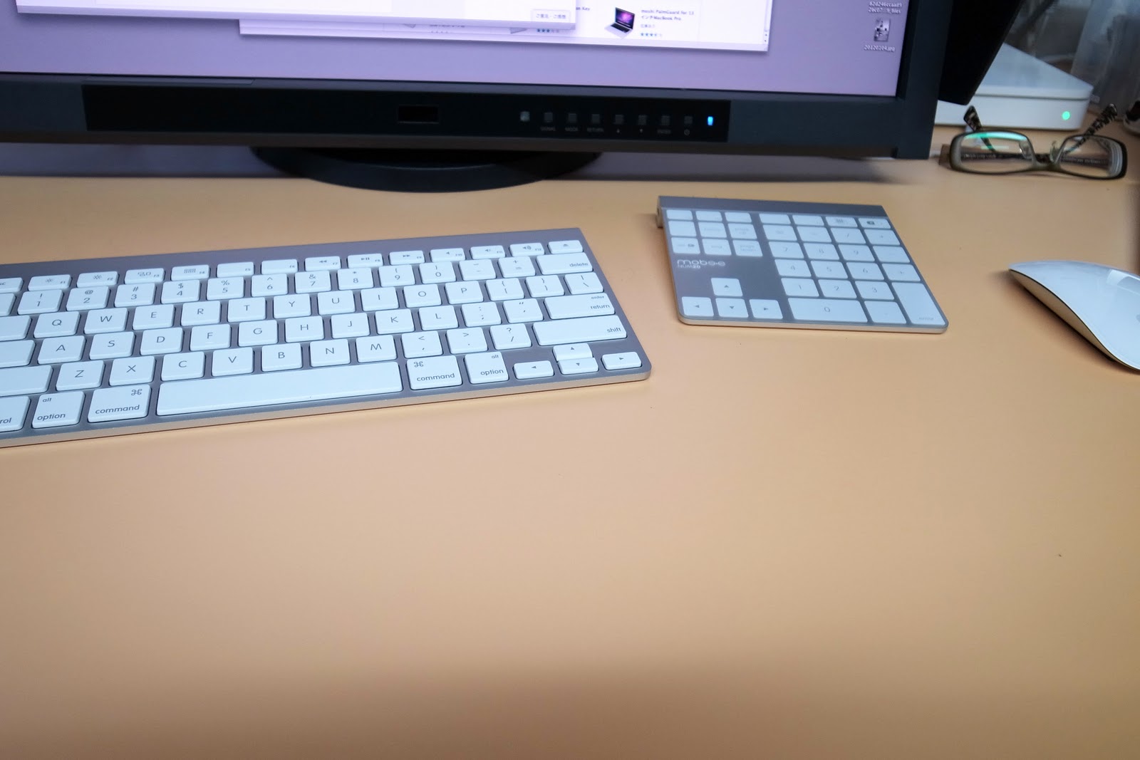 ところで、飼主のメインのMac環境はMBP15インチに24インチの外付けモニタ。これにテンキー付きのUSBキーボードとMagic Mouseと云う取り合わせだったのだが、本日ワイヤレスキーボードに取っ換えて、テンキーをMagic Tracpad with Mobee The Magic Numpad と云う環境に変更してみた。